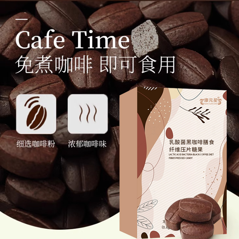 【产品名称】乳酸菌黑咖啡膳食纤维压片糖果