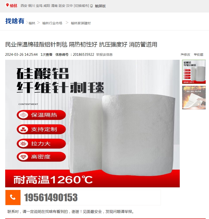 山东民业保温材料有限公司硅酸铝针刺毯的导...