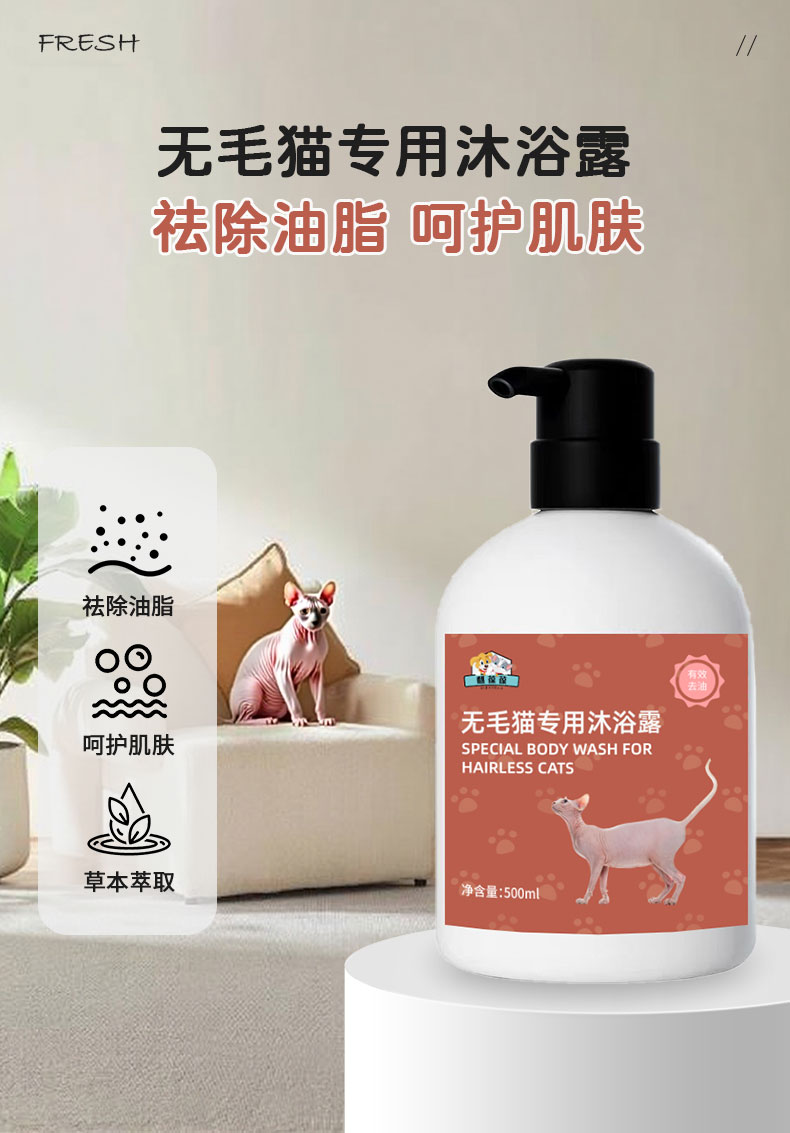 无毛猫专用沐浴露OEM生产厂家...