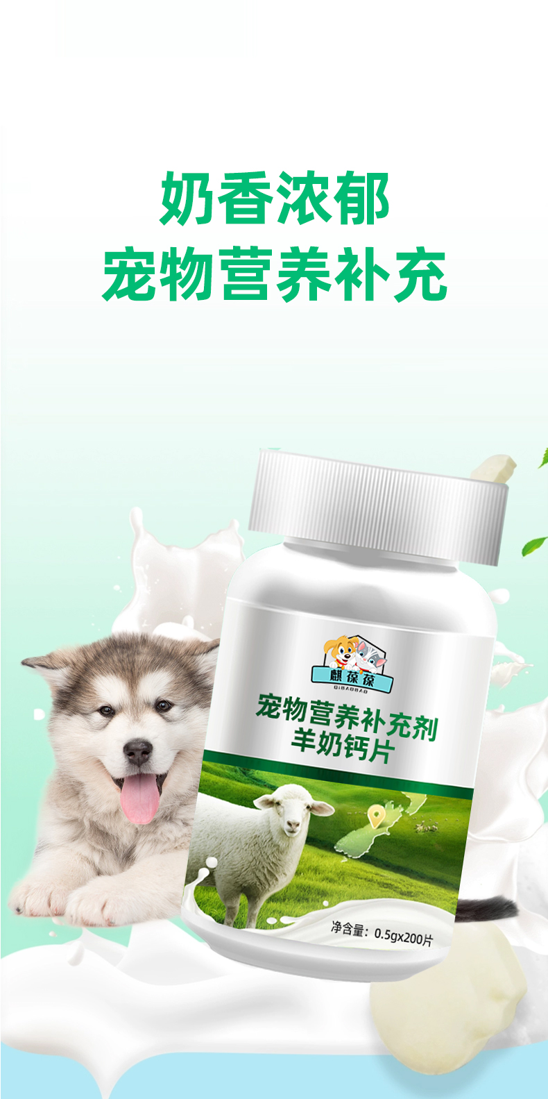 宠物羊奶钙片贴牌代加工厂家山东麒恒宠物