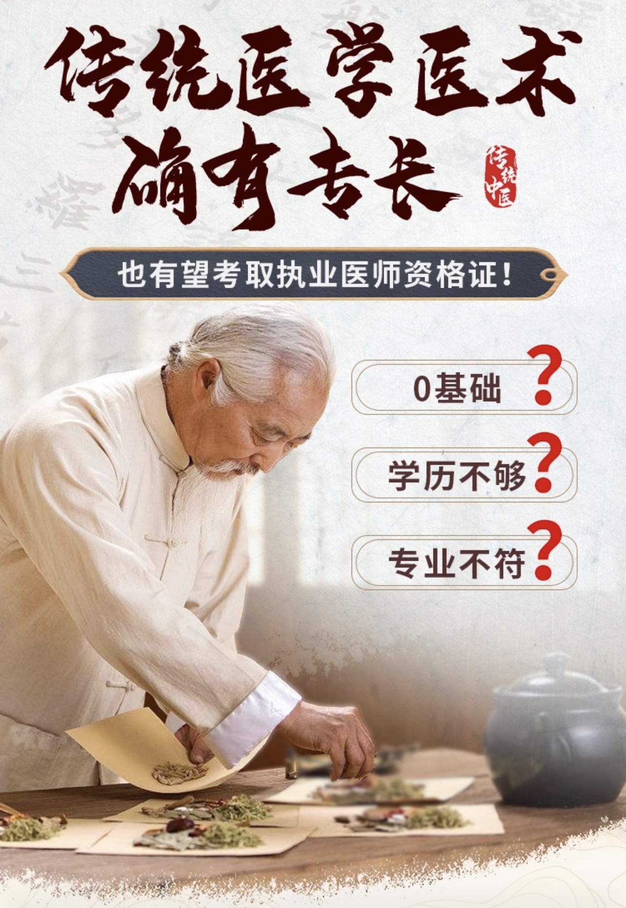 中医确有专长考证 课程设置:中医基础、中医诊断、中药、方剂、内、外、妇、儿、针...