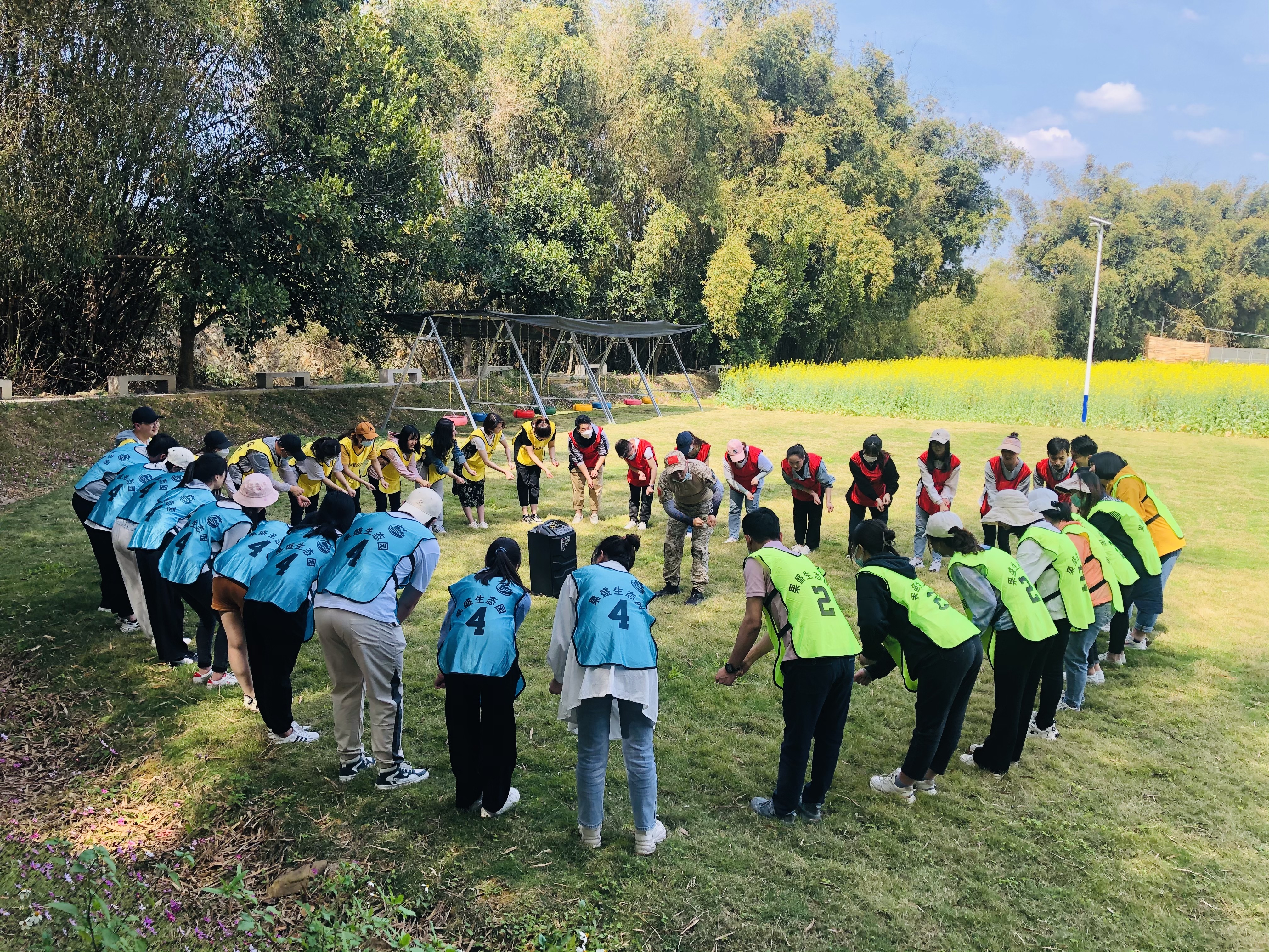 果盛生态园拥有专业的团建教练队伍,针对公司出游的人数,男女比例,年龄阶段等合理安...