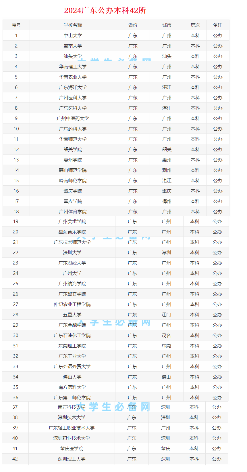 广东省大学名单