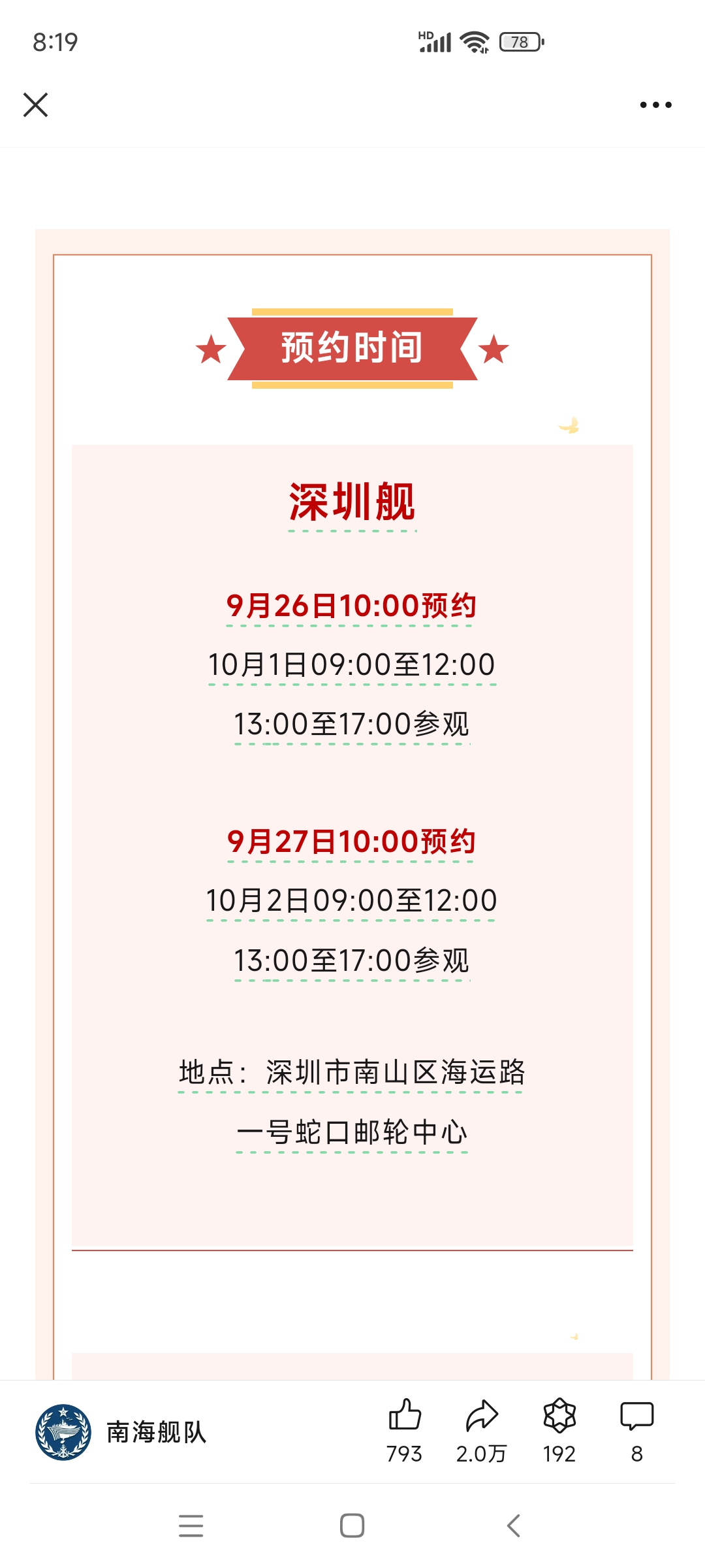 国庆期间南海舰队预约参观,深圳...