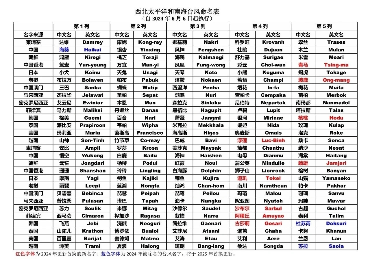 台风命名表
