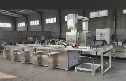 该机器采用的出料方式是翻转锅体内部的筐子...