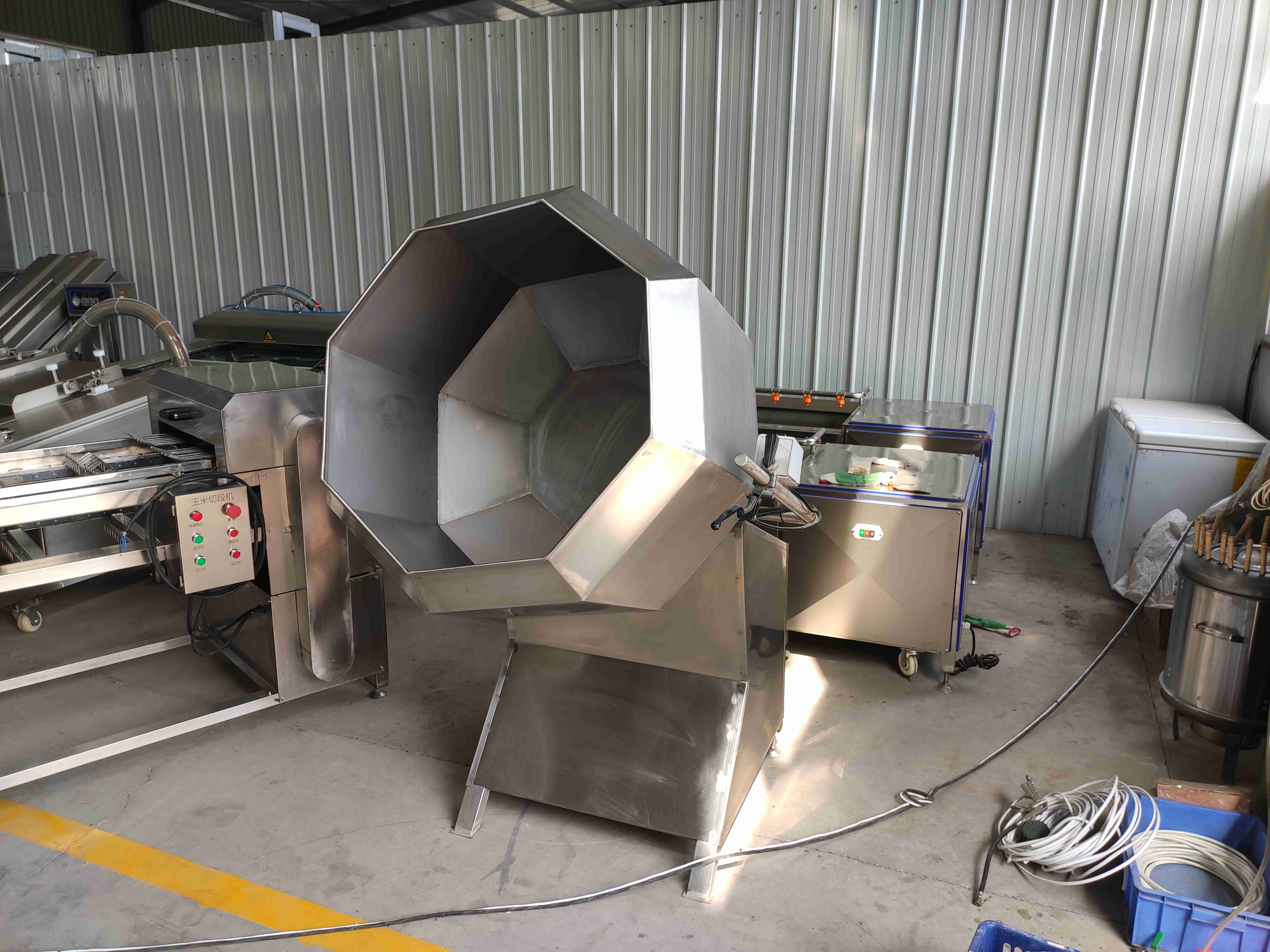 八角拌料机采用减速电机,齿轮传动,自动搅拌;拌料均匀。操作方便;产量高,不锈钢制...