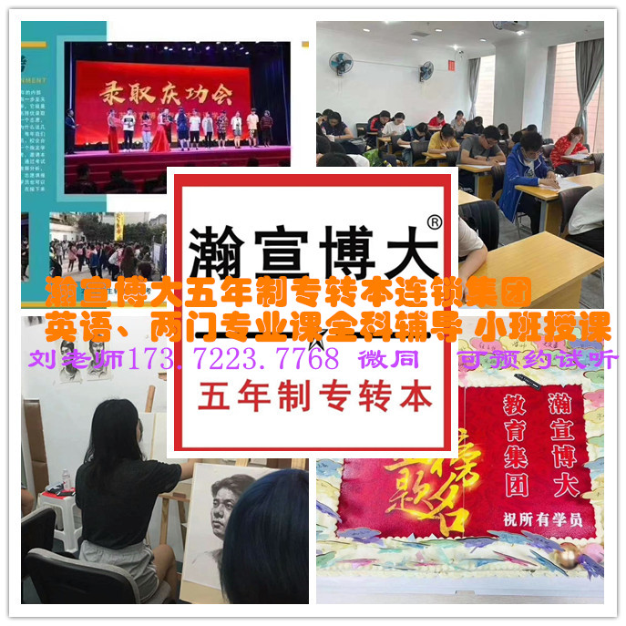 江苏瀚宣博大专转本是五年制专转本考生备考路上的领路人,是江苏省一家大规模、专业化、系统化、连锁化主做五年制专转本(五年一贯制专转本)培训辅导学校,办学15年,拥有强劲的师资力量,详细精准的内部.学习资料,针对性全科辅导英语和所有主考院校专业课,小班化教学,高考式管理,师资雄厚,教学更有针对性,还帮助学员心理疏导、答疑解惑,并从基础的知识讲解到技巧训练,各个环节循序渐进进行辅导,各个模块进行出题意图分析,查漏补缺,加强知识的掌握,提供更加轻松、更详细的五年制专转本英语及专业课辅导以及通过率更高的志愿填报服务,解决家长和考生的后顾之忧,全身心投入到五年制专转本备考中去,让考生轻松学的过程中同时提高学习成绩,提高通过率,更多详情及预约免费试听可联系瀚宣博大专转本刘老师173(微)7223(同)7768。