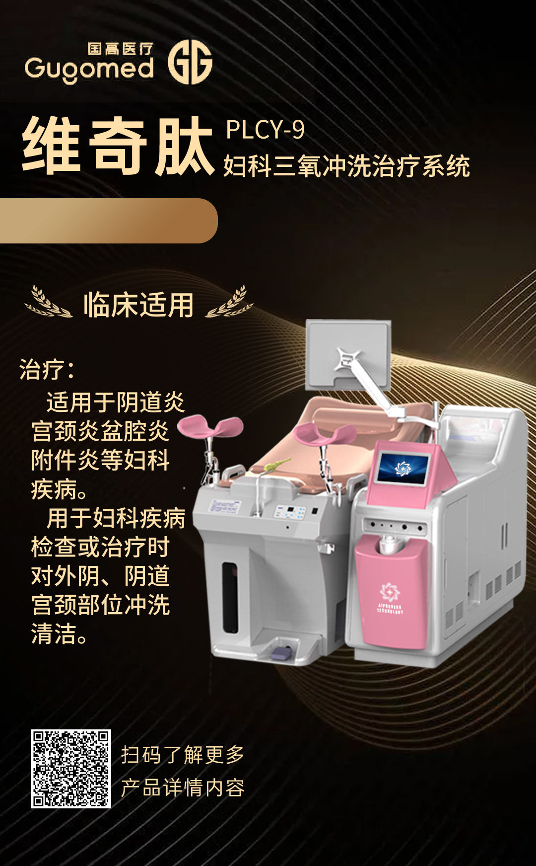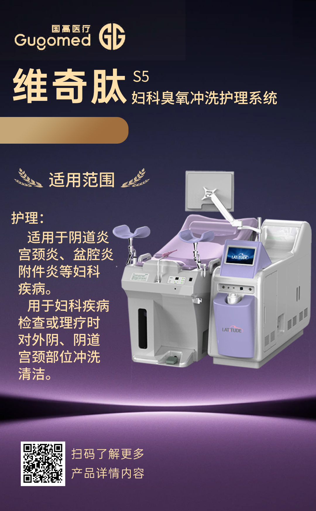 国高医疗研发生产的臭氧护理仪采用国内先进的“低温等离子体雾态臭氧”快速治 疗妇科炎症; 应用了超声波能量传导渗透技术; 治 疗系统具有臭氧气体和雾化双重功能;