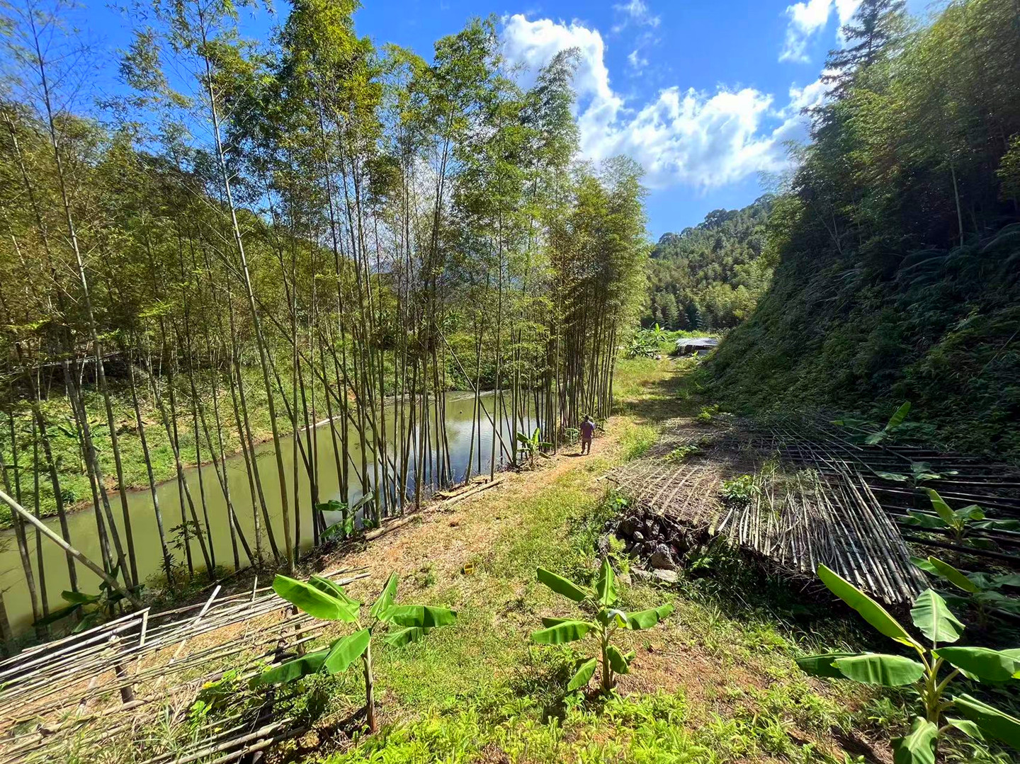 从化区良口溪头村旅游区附近100亩山地果园鱼塘农庄整体出租,使用期限:40年,出租价格:12万元/年,土地总占地面积约100亩,建筑面积约50平方,水电齐全,此农庄地块有平地也有缓坡地,地块已经平整了6亩,有一个约2亩的鱼塘。本地块四面是环山拥抱着,背后有一片片竹林像一片片竹海,山上有条山溪水,水泥公路直达,附近就是出来名的溪头美丽乡村旅游区,有景区山谷千龙沟瀑布,滑道,栈道、生态观光湖,漂流,表演场,水果长廊,水库湖边观享美景、半山腰上行人玻璃桥、古村落市集,步行街,酒店、旅馆、民宿客栈、农庄餐饮、各种各样的乡村特产,果园采摘园,田园风光,溪水边戏水等等游览景点。交通方便,附近有从化区良口溪头村高速出口,开小车大车都可以到此山地果园农庄内。此果农庄地块视野开阔,风景好,氧气足,土地肥沃,环境优美,空气清新,山高林密,峡谷幽深,溪流清澈,适合做民宿旅游项目开发,种植业,农业生态旅游、观光休闲民宿旅游,各种拓展培训、农庄、山庄、休闲养生、休闲度假,养老项目、养生馆、康养保健休闲娱乐、旅游水果采摘园,团建活动、户外训练活动,户外露营营地等等。