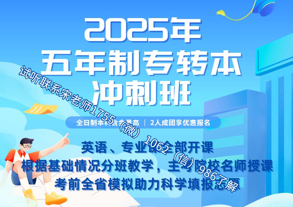 瀚宣博大五年制专转本学校现针对2025年五年制专转本考生开设考前集训辅导班,利用剩余的6个月时间来集中培训,一周上课4-5天,在剩余的时间里将英语和2门专业课的考点全部复习,并利用好真题卷和押题卷、习题册等做题巩固,冲刺高分!