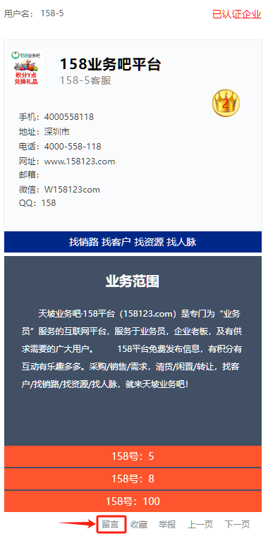 描述:客服留言 158平台站内留言