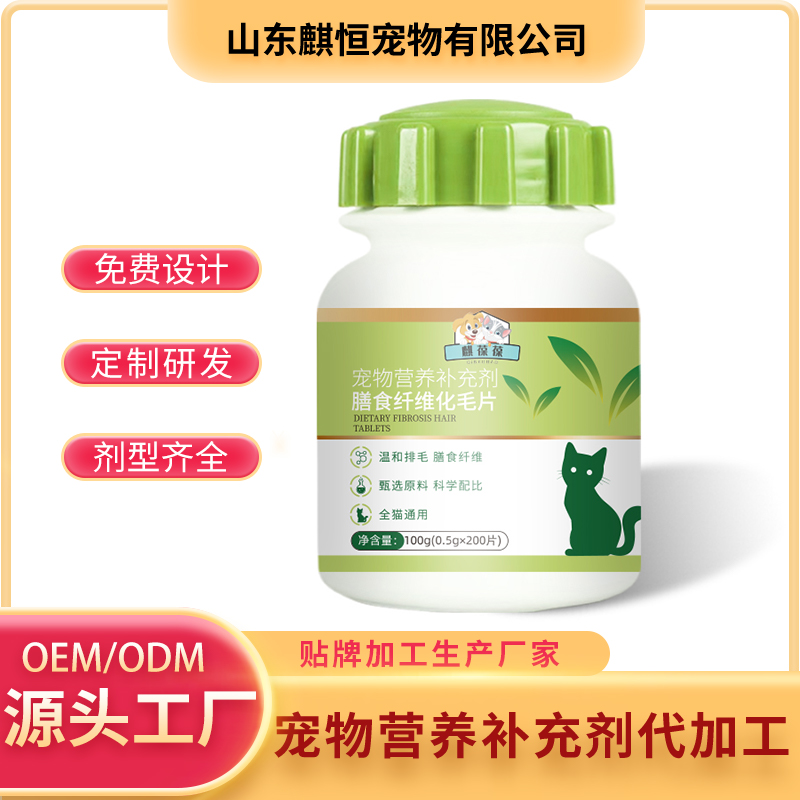 描述:宠物膳食纤维化毛片 宠物营养补充剂OEM贴牌厂家 山东麒恒宠物有限公司 可研发打样 提供免费包装设计