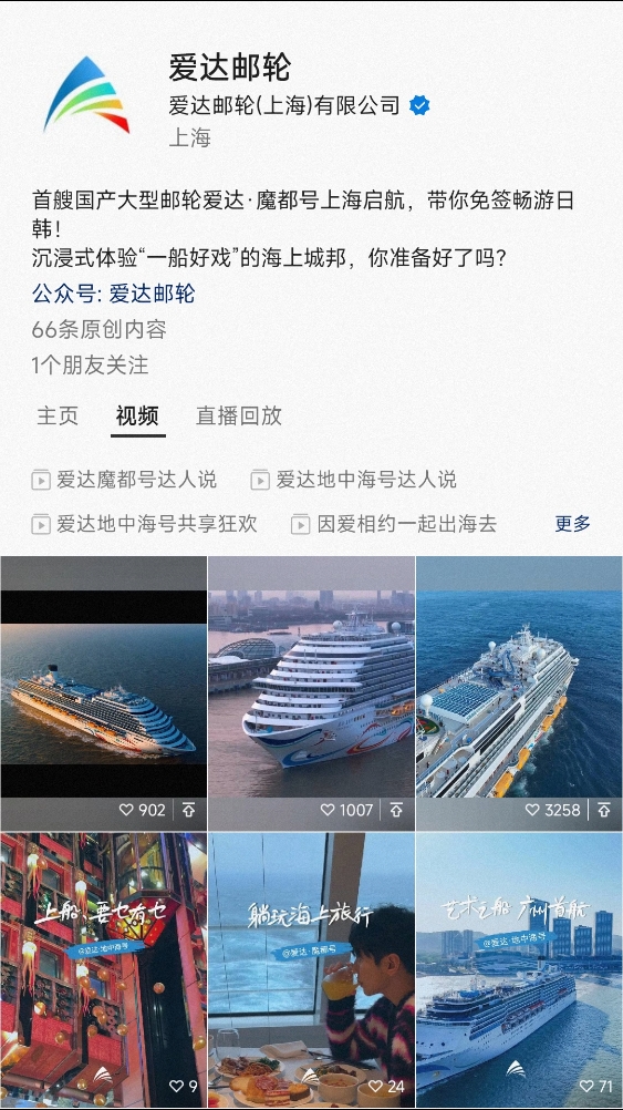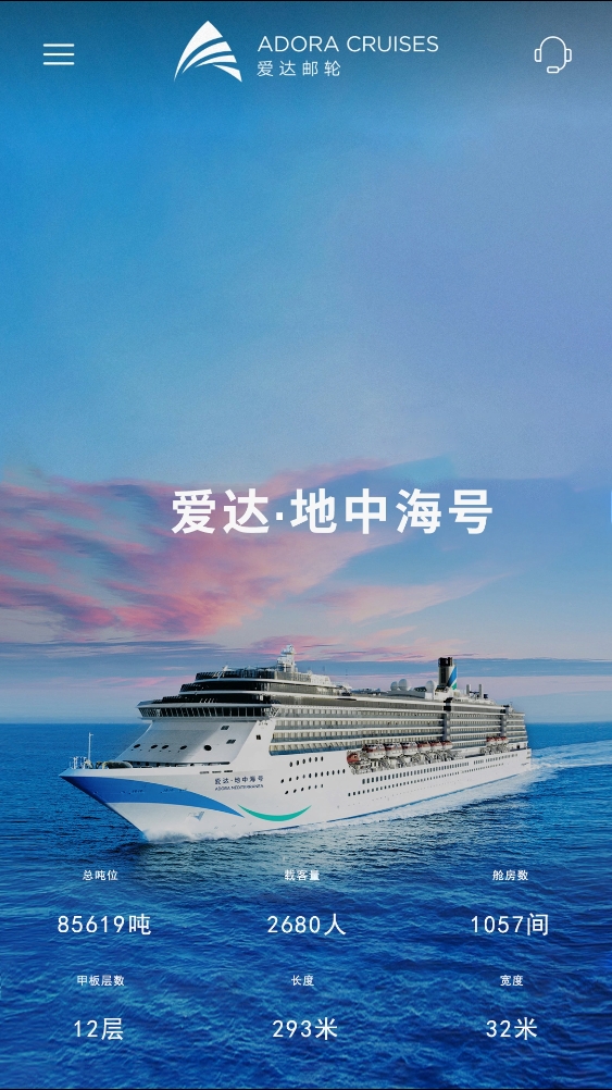 描述:爱达邮轮有限公司(Adora Cruises Limited),前身为中船嘉年华邮轮有限公司,是具备市场营销、商务运营、海事运营、酒店和产品管理、新造船管理等全运营能力的中国邮轮旗舰企业。爱达邮轮 (Adora Cruises) 是隶属于爱达邮轮有限公司的全新中国邮轮自主品牌,致力于打造真正受国人喜爱的高端邮轮度假体验。