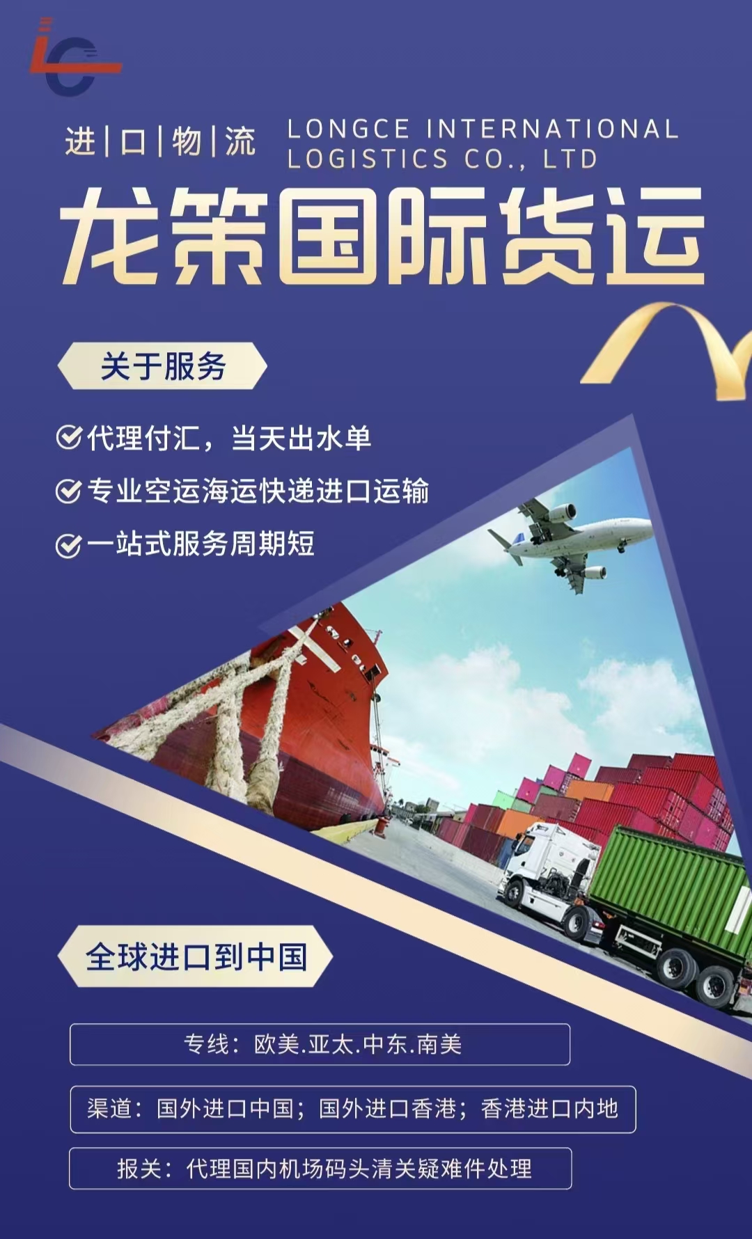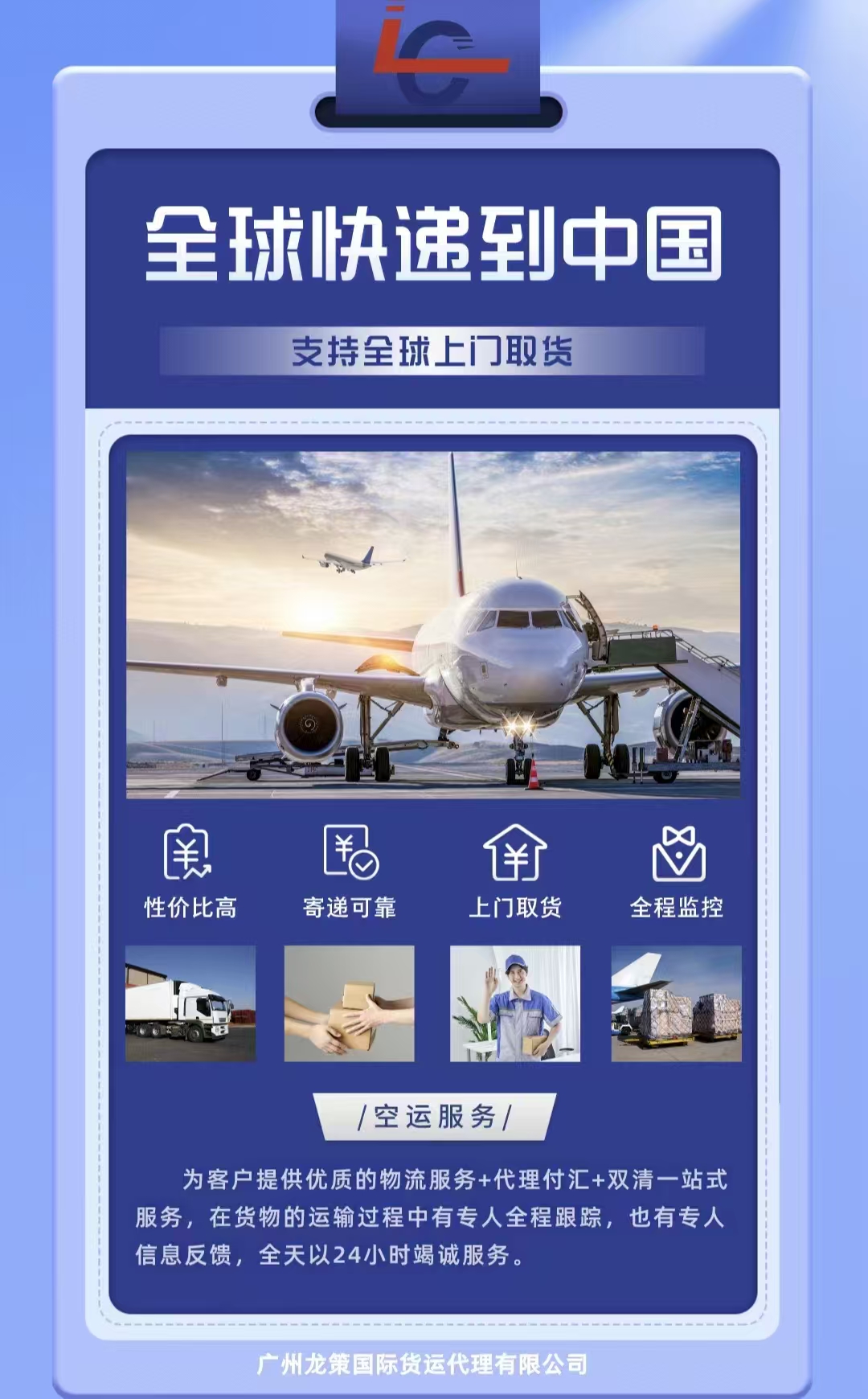 描述:为客户提供优质的物流服务+代理付汇+双清一站式服务,在货物的运输过程中有专人全程跟踪,也有专人信息反馈,全天以24小时竭诚服务。