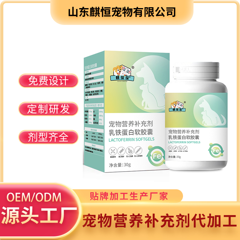 关键词:宠物营养补充剂定制生产贴牌厂OEM/odm代加工 宠物乳铁蛋白软胶囊