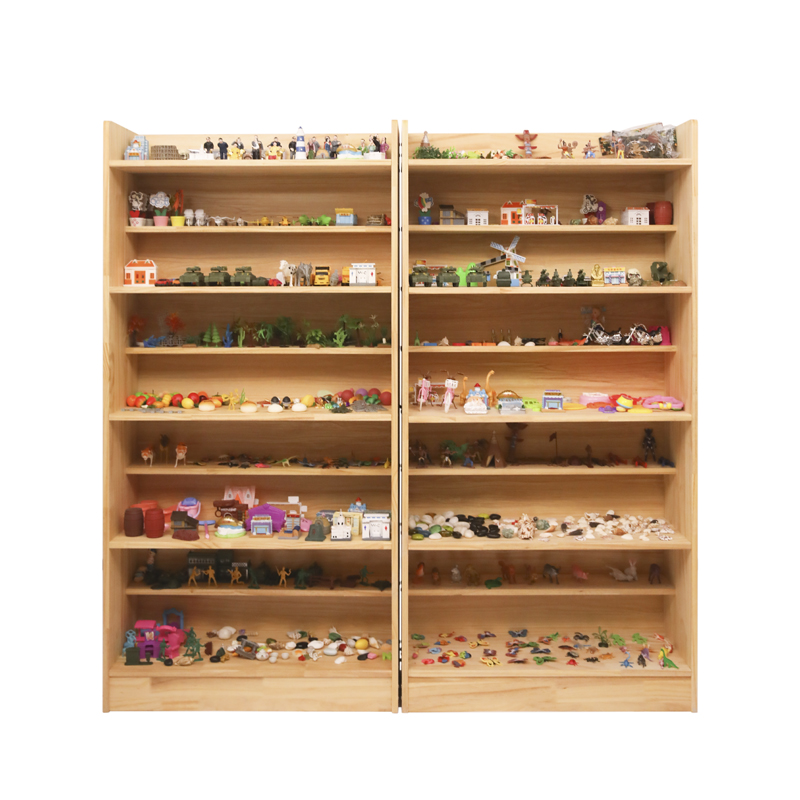 1.4标准实木沙具柜2个:纯实木制造,阶梯搭步式设计,五层九阶(尺寸:160*80*30cm);