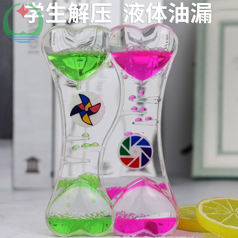 描述:液体油漏沙漏摆件,OK形旋转风车,儿童节礼物,学生玩具礼品,毕业礼物。