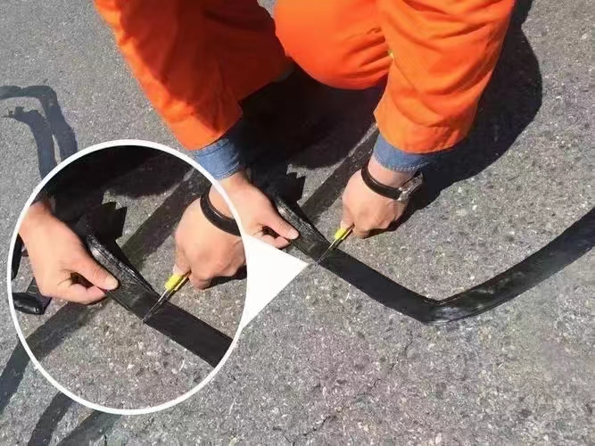 描述:沥青路面贴缝带是一种滚卷式阻裂防水隔膜,厚度大约2-2.5mm左右,主要用来处置路面裂缝。路面裂缝贴缝带可以直接铺贴在路面裂缝上,起到密封、防水的作用,并防止路面裂缝扩散,避免路面过早损坏。由于贴缝带材料本身稳定性好,抗拉强度大,加上它有较强的粘合力,与路面完全结合在一起,有效的预防了裂缝扩张和雨水的浸入,因而减少了路面破损,从而延长路面的使用寿命。